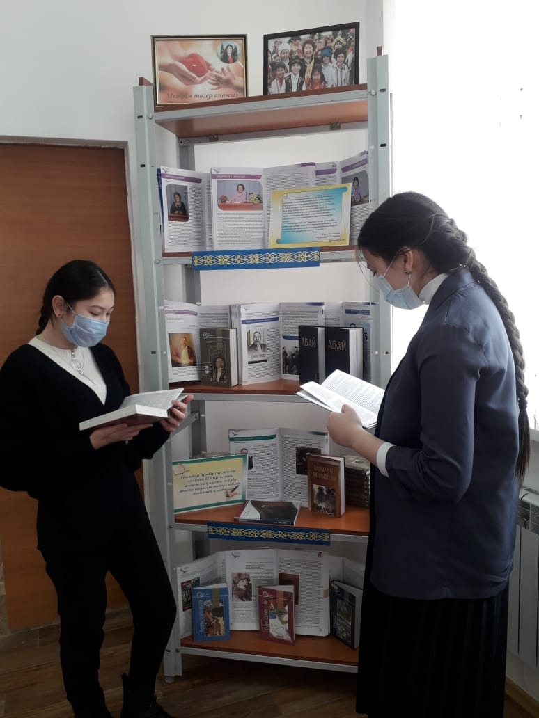 Сондай-ақ «Мейрім төгер анамыз»атты мектеп кітапханасында Байтенова Р.Ш. ұйымдастыруымен Сара Алпысқызының қызметі туралы кітаптар көрмесі ұйымдастырылды. Сара Назарбаева туралы оқушыларға мәліметтер беріліп, рухани адамгершілік тақырыбында сыр төгетін әдеби шығармалармен таныстырылды.